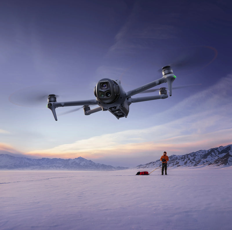 Now available at US Drone Supply, the Mavic 4 Pro features a completely redesigned body with a ball-style 360° Infinity Gimbal for smoother footage and better aerodynamics. Its triple-camera array includes a 100MP Hasselblad wide with adjustable aperture and up to 6K/60 HDR video, plus a 48MP medium tele and a 50MP standard tele—both capable of 4K/60 HDR capture. Designed for performance in any light, it offers exceptional night shooting thanks to a 0.1-lux nightscape vision system and front-facing LiDAR. Expect better transmission, longer flight time, vertical shooting, and smarter subject tracking—all backed by fast shipping and expert support from US Drone Supply.
